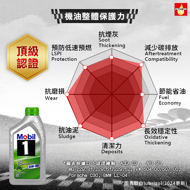 ➤ Mobil 1 ESP 5W-30 為先進性能全合成機油。