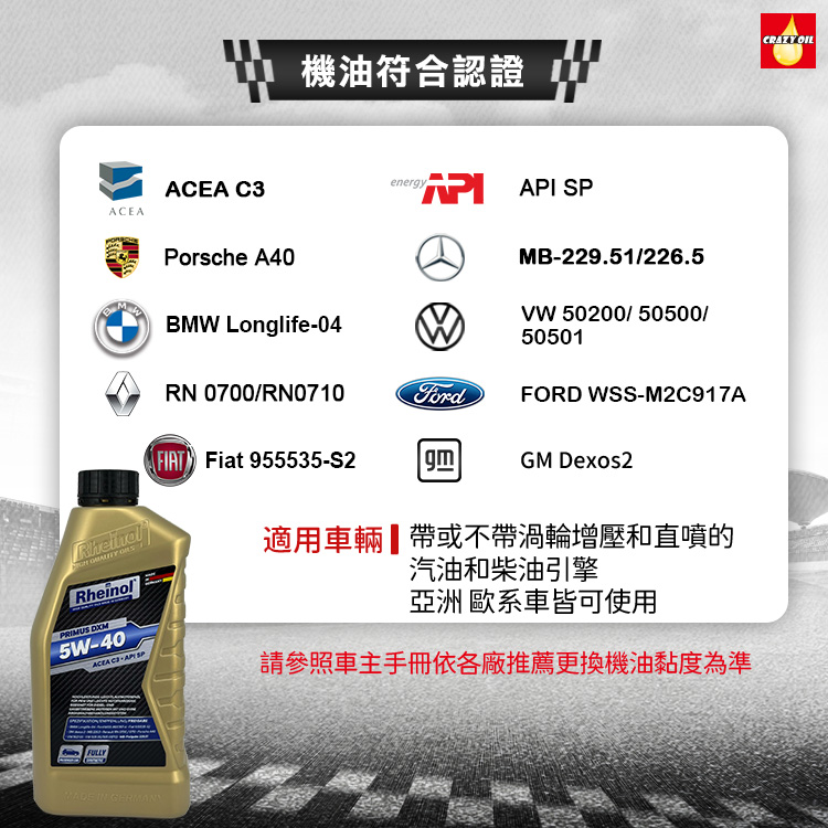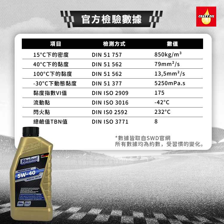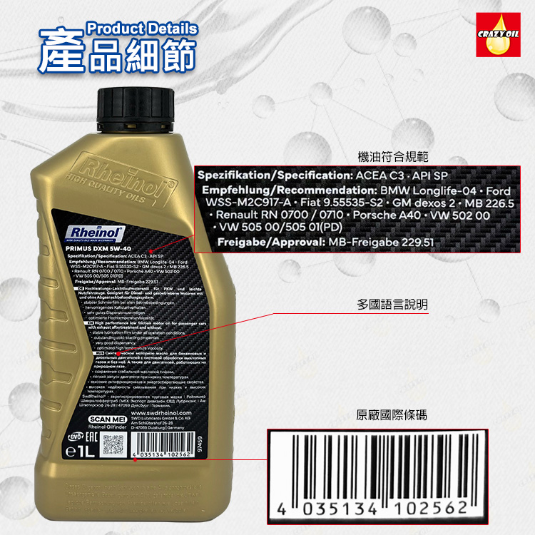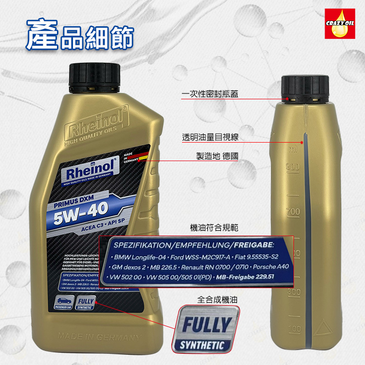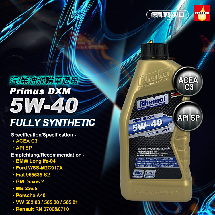 品名: Swd Rheinol Primus DXM 5W40 全合成機油
