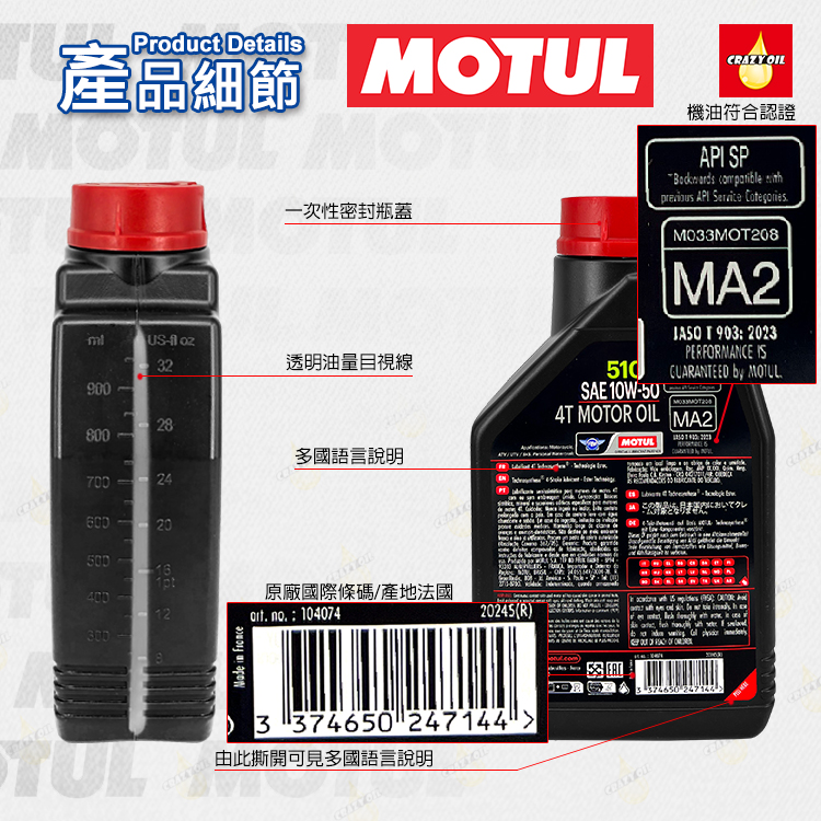 瓶身背面MFD後為製造日期「 DD.MM.YY 」,例如「03.06.24」表示2024年06月03日製造。(僅供參考,非代表此款機油製造日期)