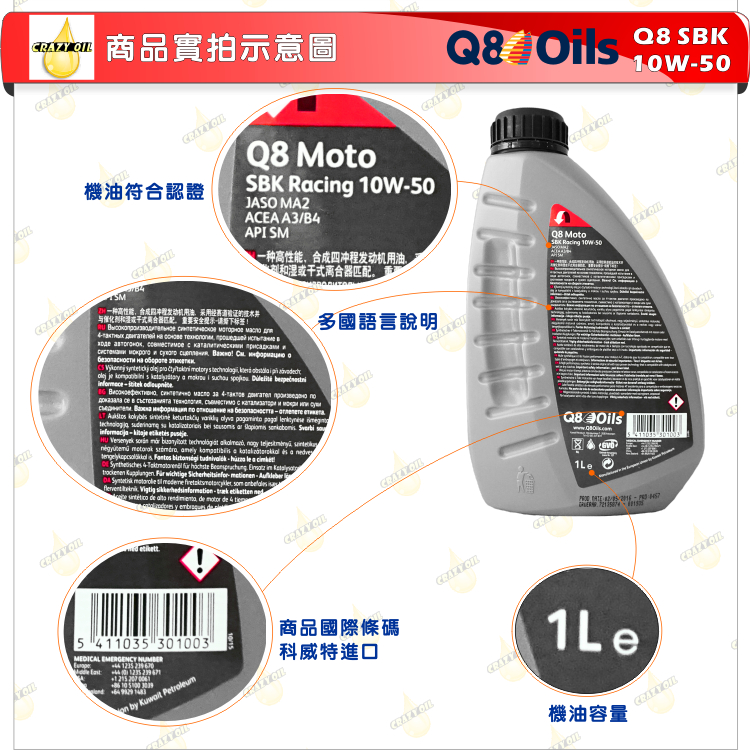 品名 : Q8 SBK 4T 10W-50 合成機油
