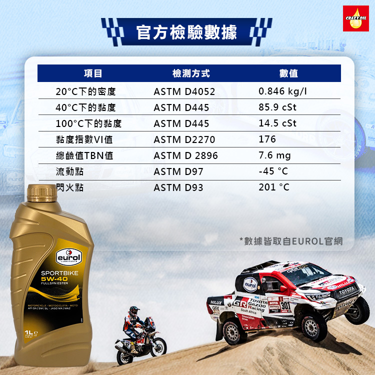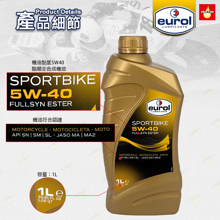 品名 : Eurol SportBike 4T 5W-40 機車酯類全合成機油