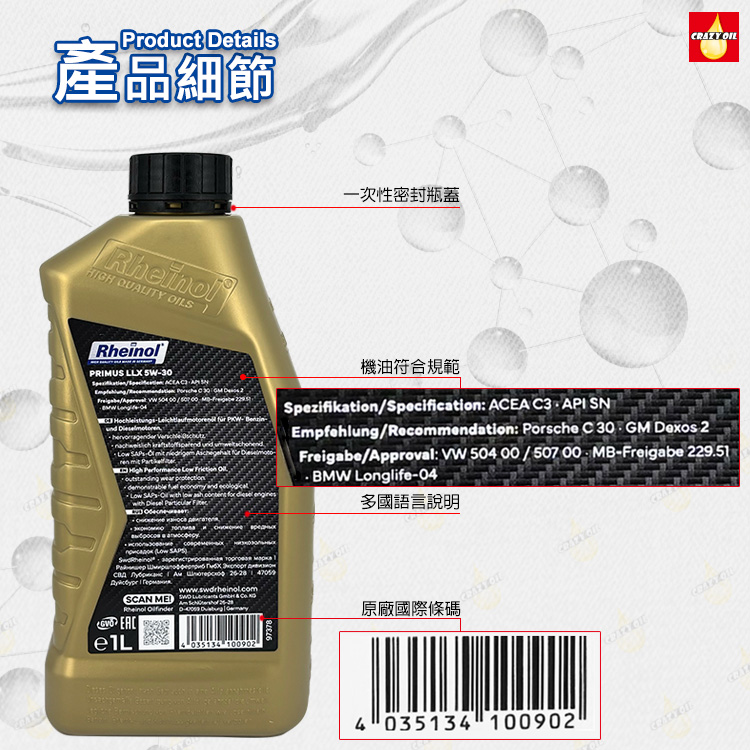 ➤ 依台灣商品標示法規規定商品區標示保存日期,基本上機油放置於陰涼乾燥處且不開封即可保存5年以上。