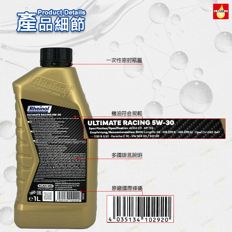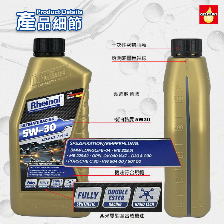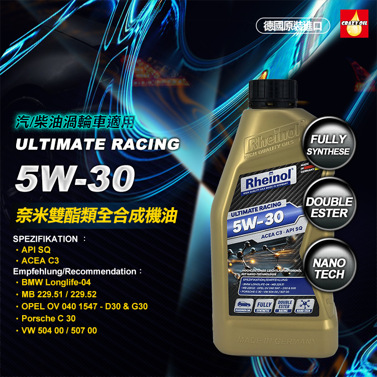品名 : 德國原裝 SWD Rheinol ultimate racing 5W30 奈米雙酯全合成機油