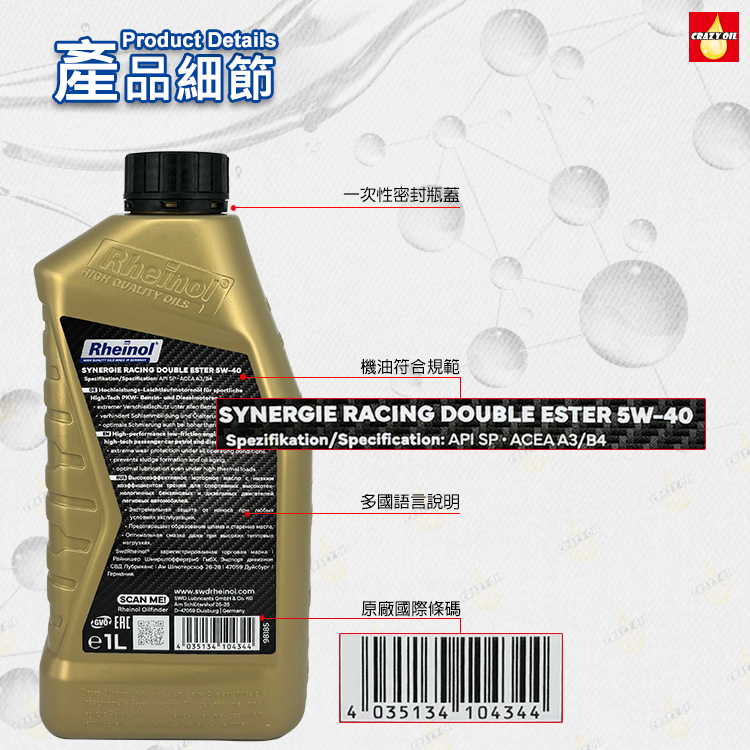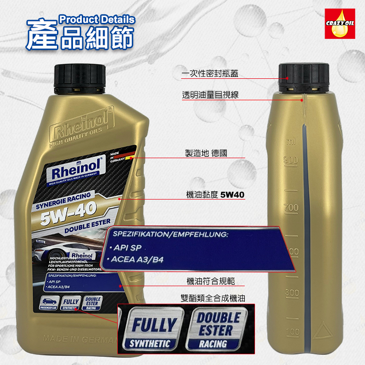 品名 :   SWD Rheinol Synergie Racing 5W40 雙酯類全合成機油