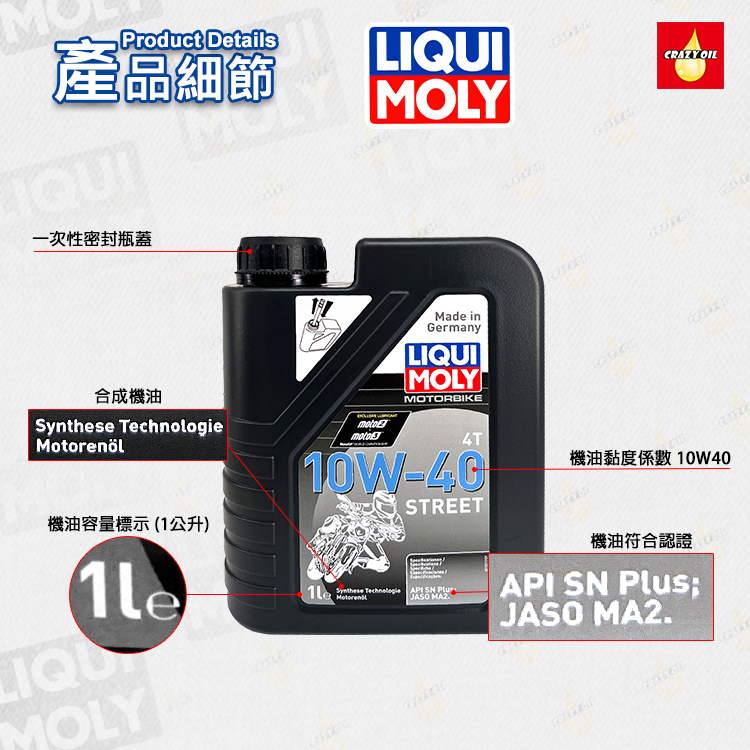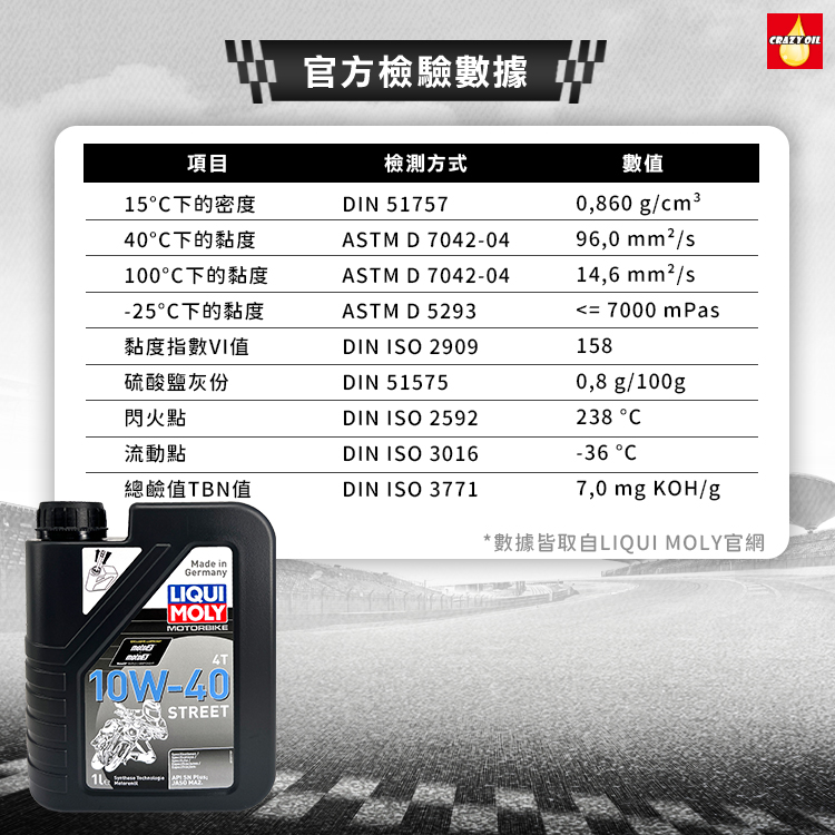 品名 : LIQUI MOLY MOTORBIKE 4T 10W-40 STREET 合成機油