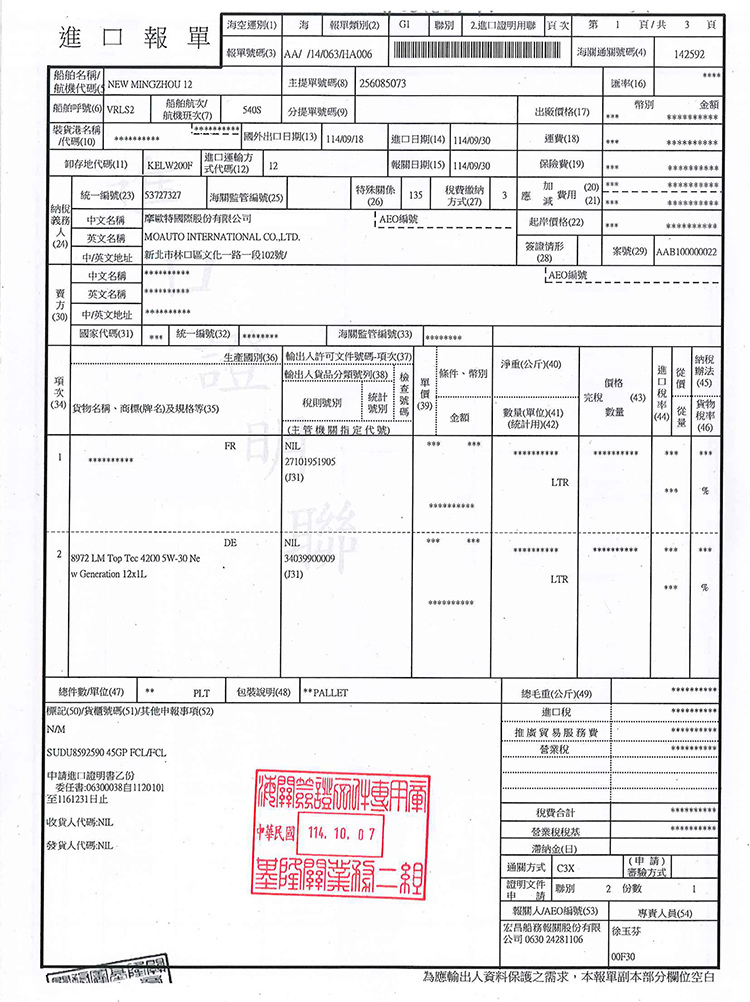 ➤ 全館油品皆已投保一千萬產品責任險,可安心購買。