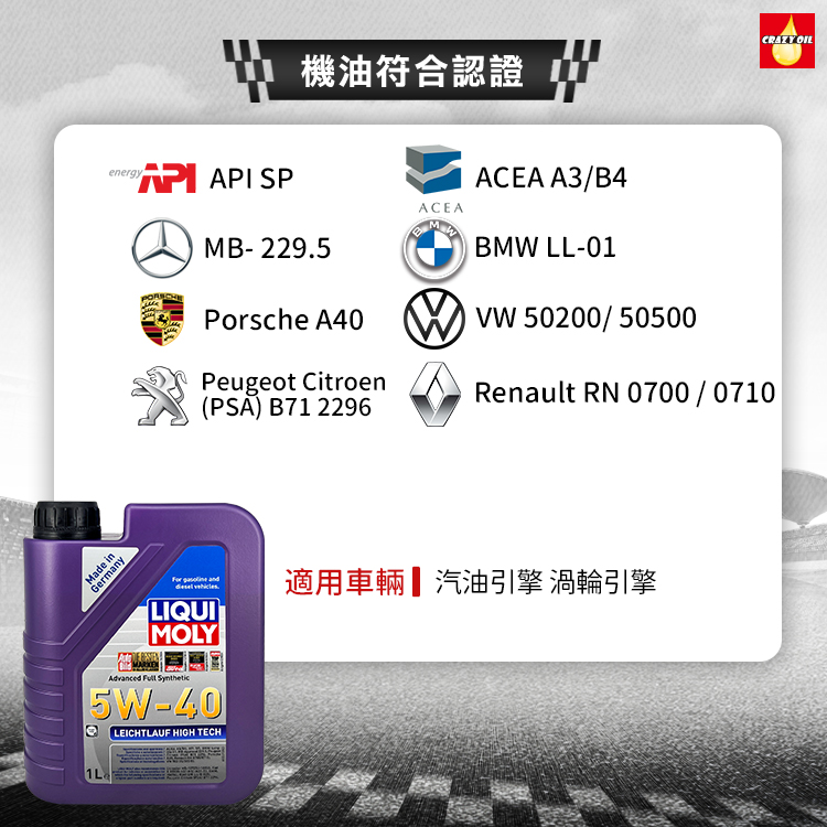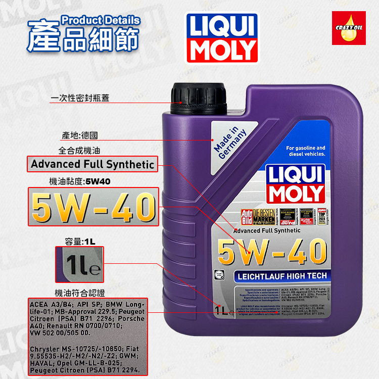 品名 : LIQUI MOLY Leichtlauf High Tech 5W-40 全合成機油