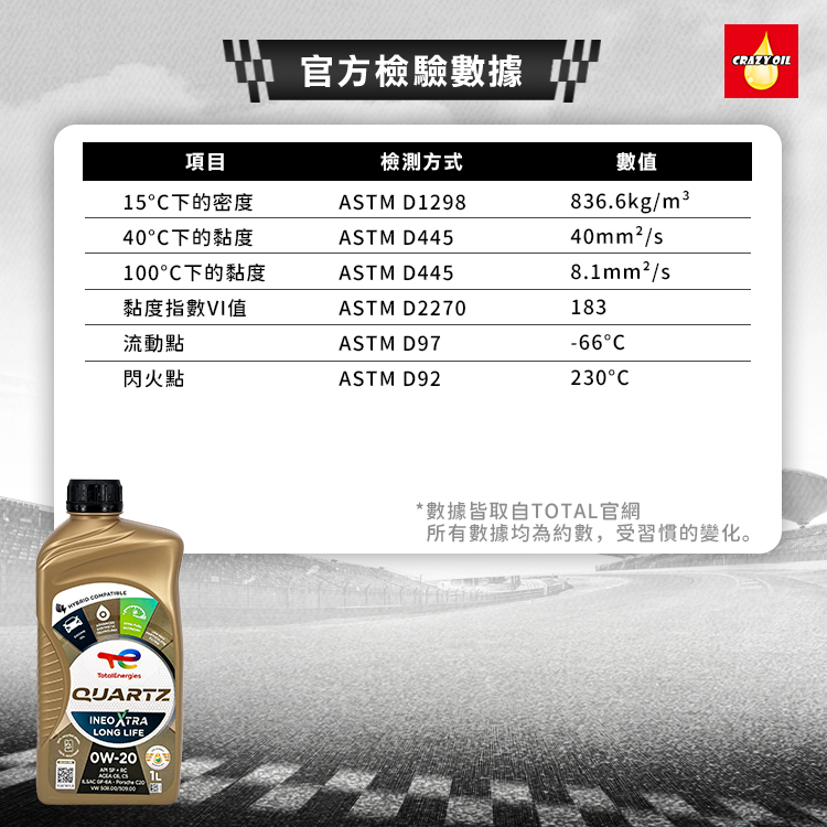 品名 : TOTAL QUARTZ INEO XTRA LONG LIFE 0W-20 合成機油