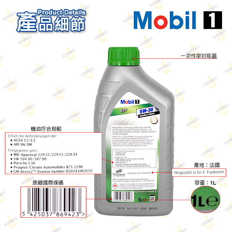品名 : Mobil 1 ESP 5W-30 SHC 合成機油