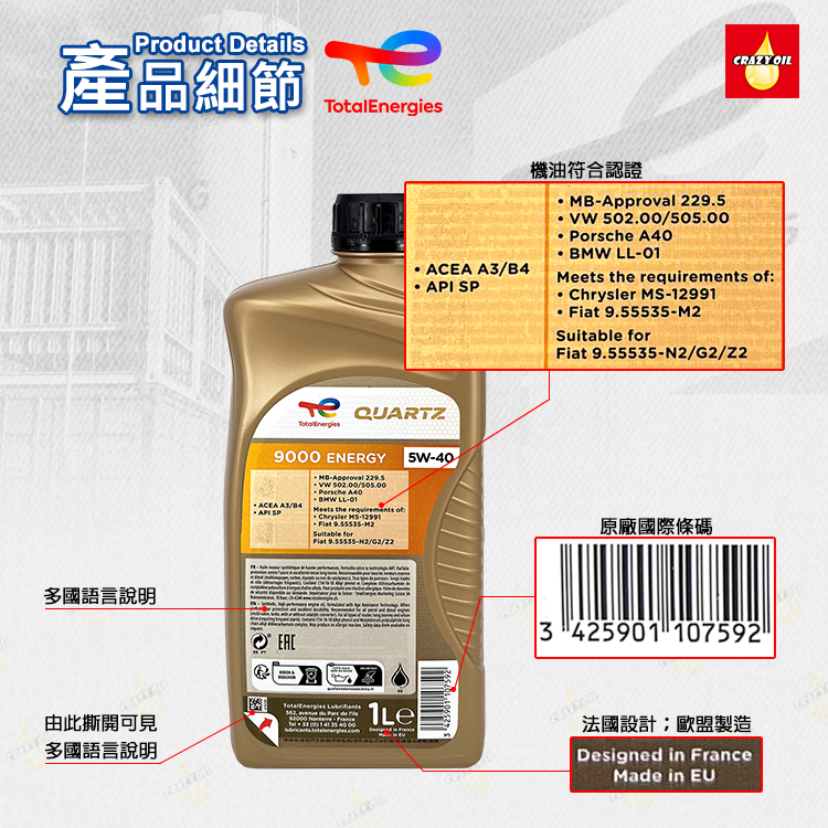 品名 :TOTAL QUARTZ 9000 ENERGY 5W-40 合成機油