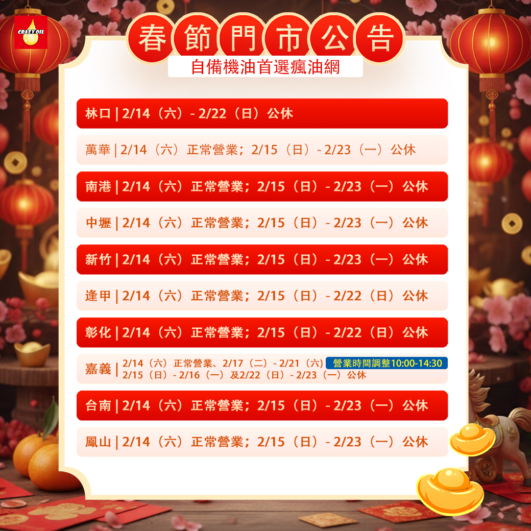 逢甲 | 2/14(六)正常營業;2/15(日)- 2/22(日)公休